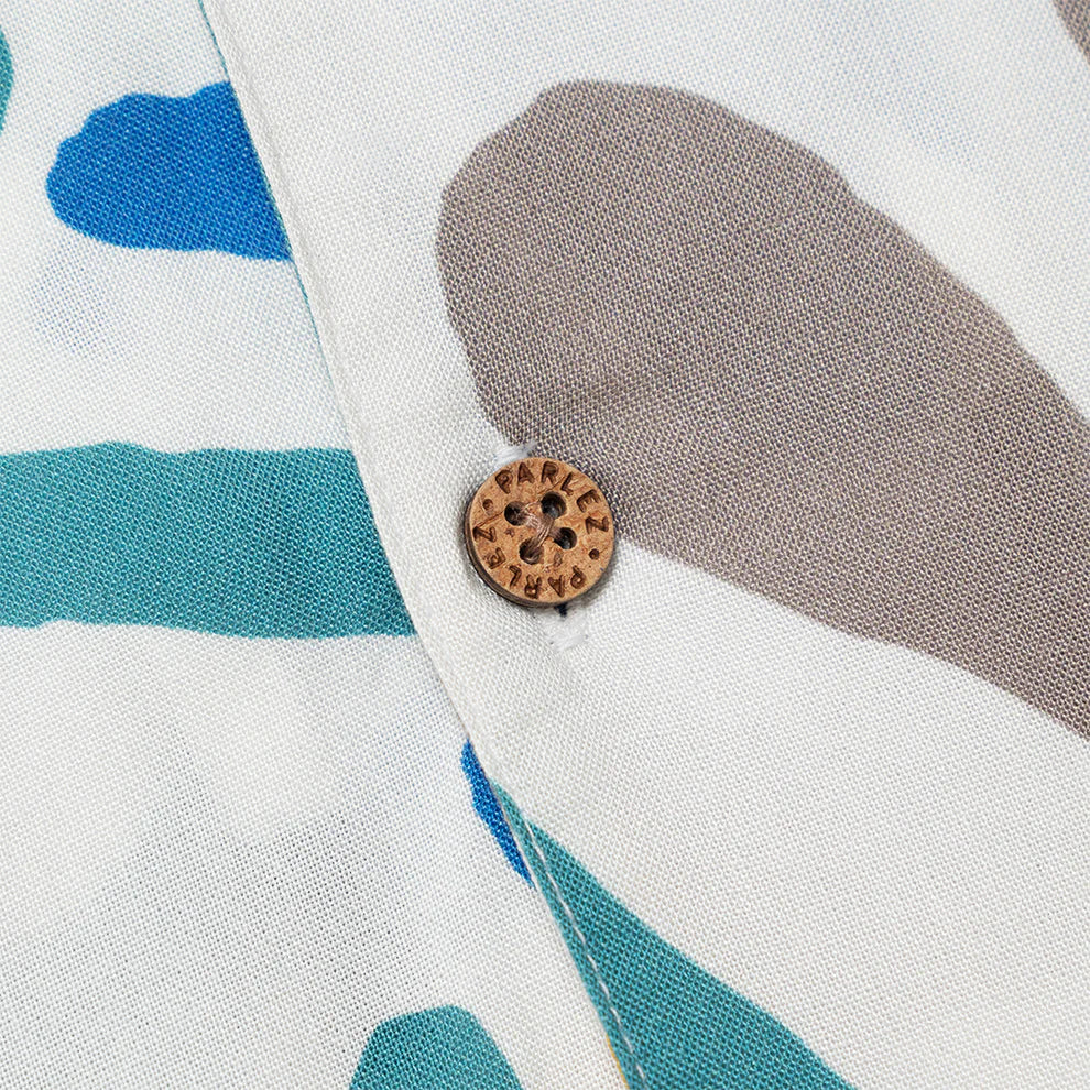 The Antigua Shirt in Multi. A short sleeve shirt made from a soft touch, Eco Vera Viscose. Featuring a seasonal all-over print, a classic revere collar and branded coconut buttons.
